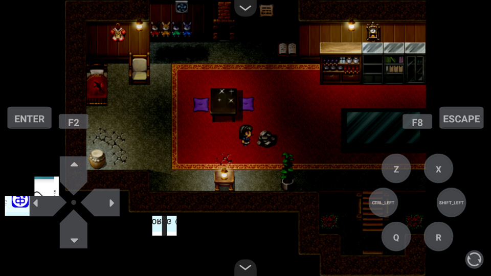 钻进桌底得到花哨的剪刀,出来后拿起盘子向左走挡下绳子陷阱(ver1.01此处QTE必须速按“下+Z”,ver1.02及以后版本此处QTE只用速按“Z”,请注意游戏版本。在此之前要提前检查Z键是否工作正常,若Z键没反应请按空格或回车代替,这三个键都是调查按键可通用。)