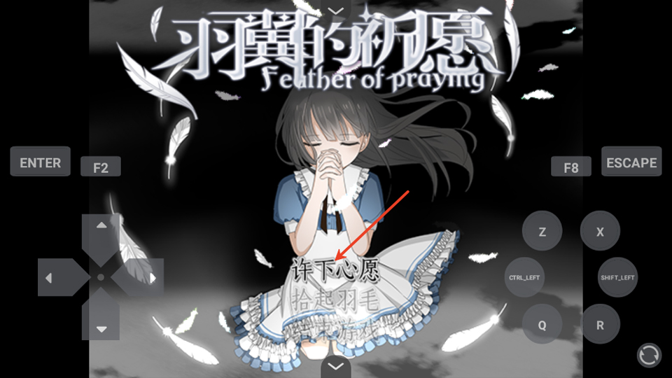 1、在本站下载安装好羽翼的祈愿安卓版,运行游戏并进入,并点击许下心愿开始;