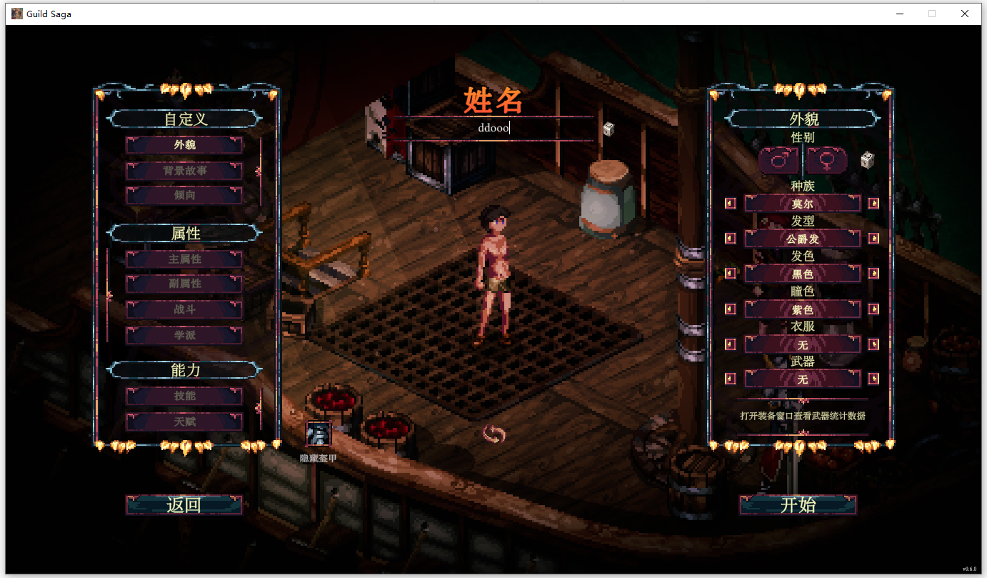 有多少人跟我一样在人物建卡这待了半小时,选项实在太多啦,外貌,背景故事,倾向让你个性十足,四种武器,十个学派任你搭配,每个学派都有5个法术供你选择,哎,我到底是当一个魔法战士,神圣射手,还是一个暗影盗贼呢,真是一个让人开心的烦恼。对了,赞一下制作组,游戏没有因为像素就糊弄玩家,优秀的纸娃娃系统让每件装备都有自己的独特造型,终于不用一套衣服走天下啦。