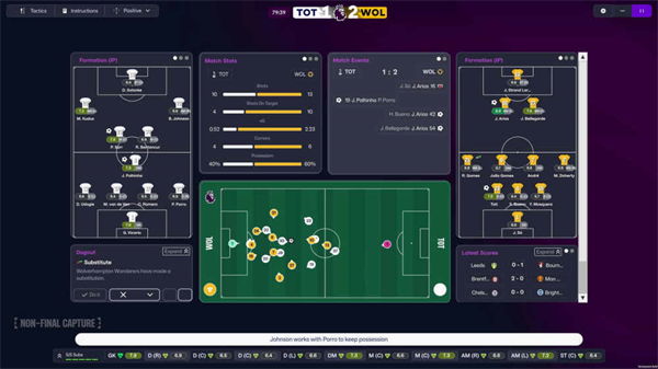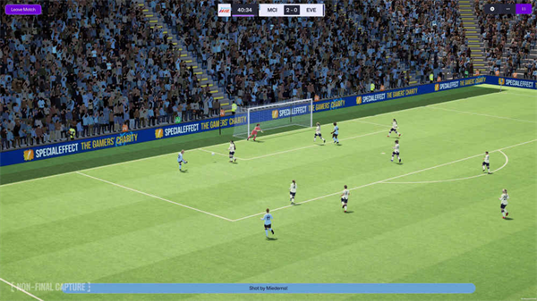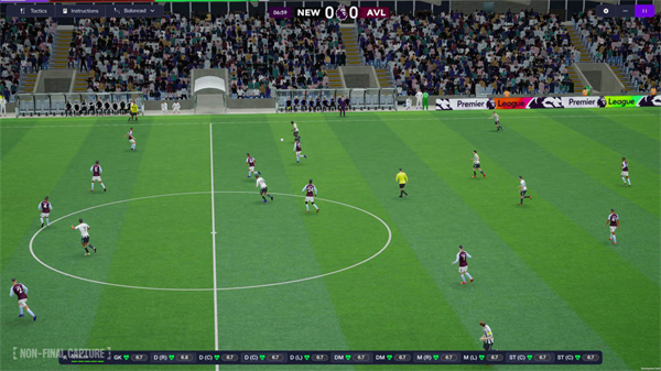 4、至于比赛时的画面这次可以说是有了明显的进化。得益于采用新的Unity引擎,3D画面效果更为出色。而球员的动作也丰富许多,说实话以前的3D比赛球员就像个柱子一样,动作十分僵硬。到了FM26,这些人的动作看上去终于像是在踢足球了,跑动、传球、射门动作衔接更为流畅自然,只不过有时候盘带还是会显得有点溜冰。另外就是3D比赛时的UI也十分精简,视角选择也比较丰富,你可以设置成像是在看比赛转播一样。此外有个细节设定就是在只看精彩镜头的时候,可以根据比赛的重要程度来动态调整显示精彩镜头的量,一些不重要的比赛可以更快速地踢完。