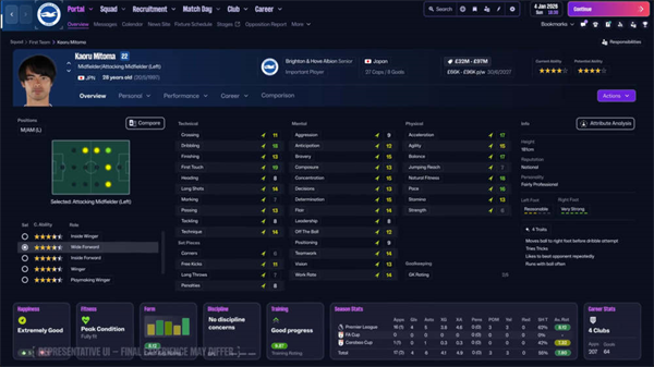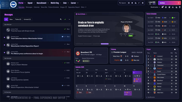 1、《足球经理》(FM)系列经历了上一作的取消,时隔两年之后即将于11月推出最新作《足球经理26》(FM26),本次在TGS2025上,我们实际试玩到了这款游戏,看看这个获得更多开发时间的作品究竟有什么变化。
