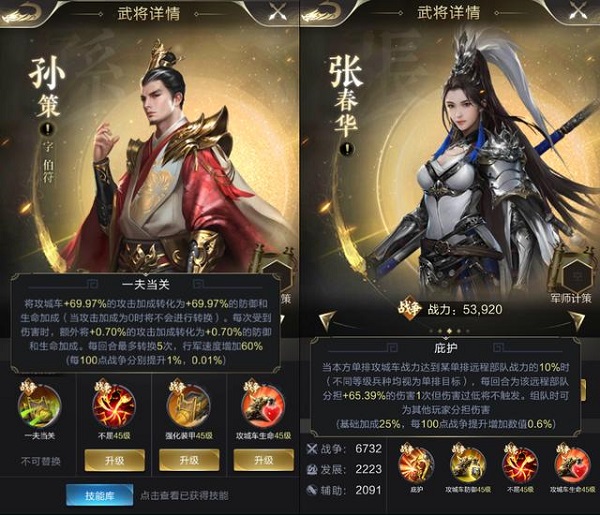 两个强力辅助的武将,在集结时可以让攻城车为其他兵种,尤其是远程部队提供全方位的保护。