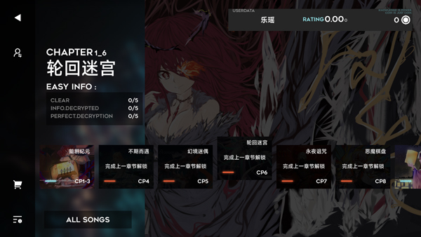第六章轮回迷宫,所有歌曲轮回完成之后,退出点击曲包三中的Star Fall进行游玩即可解锁第六章隐藏歌曲,歌曲打完之后解锁第七章。