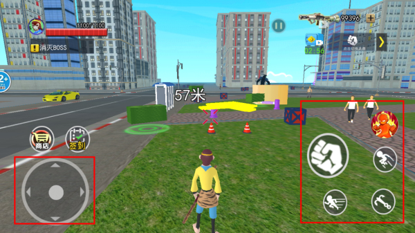 3、通过左侧操控盘控制角色移动,右侧使用技能;