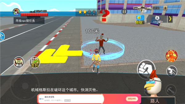 2、根据游戏给出的任务进行游戏,游戏中会有指示标,跟着指示标即可找到目标人物/boss;
