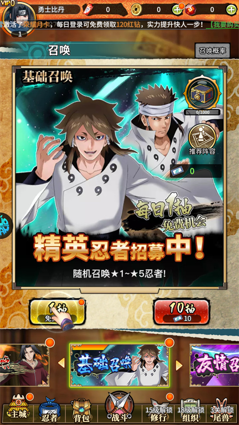 6、八日登录可以获取七个强力忍者和顶级全系仙禁自选