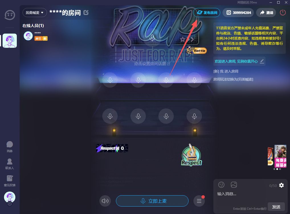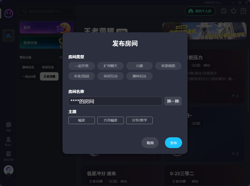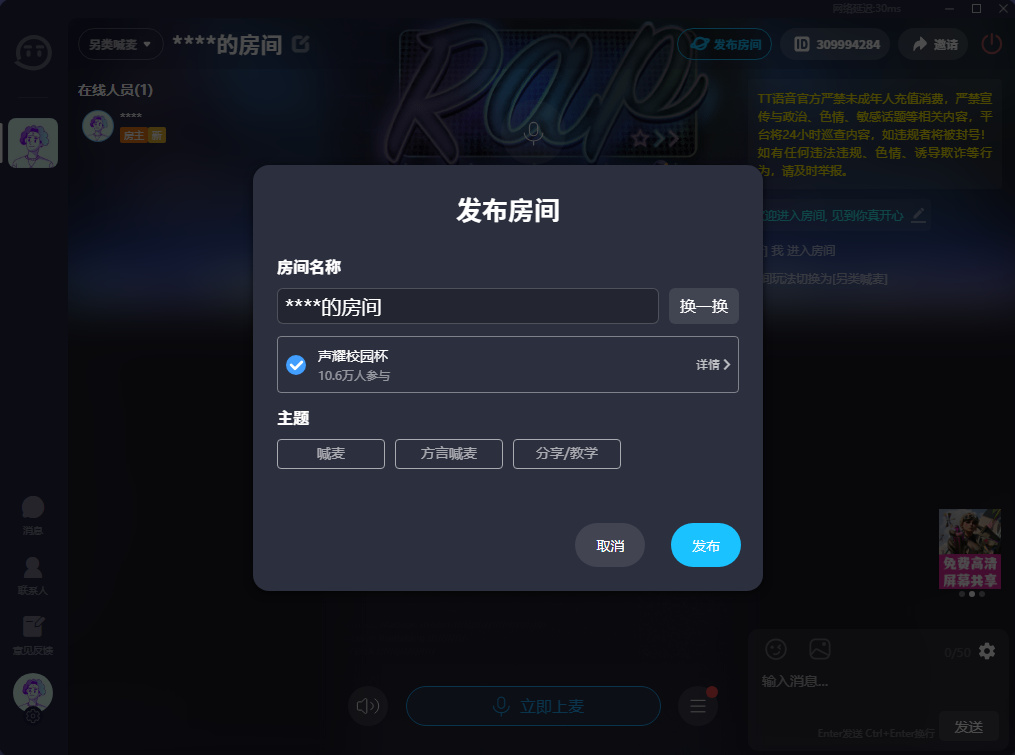 TT语音娱乐版如何发布房间到大厅