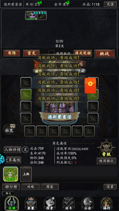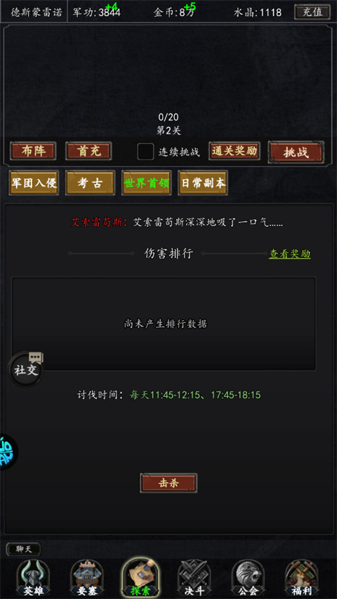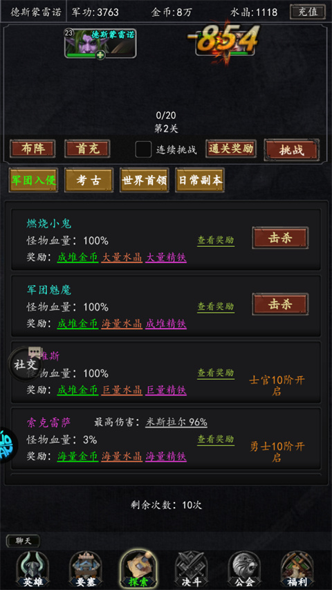 2、刷军团入侵,有次数就刷,每1小时恢复1点次数。
