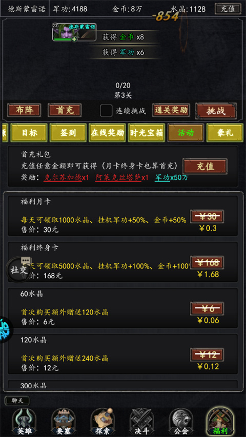 8、开通双卡(月卡和终身卡),双卡玩家每天还是可以领取不少的水晶