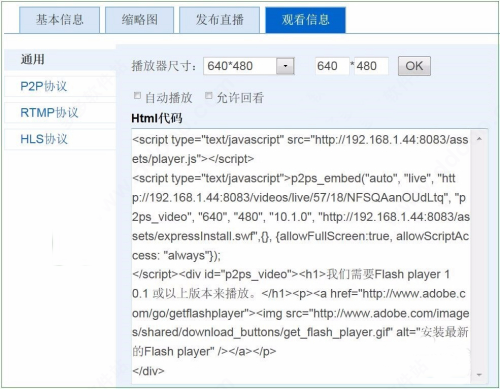 3、 嵌入网页播放器HTML代码进行网络观看。