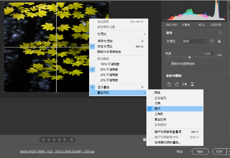 裁切照片时,通常将照片的一部分精确对齐到相框的中心。这对于 3x3 网格叠加来说很难做到精确。您现在可以选择在裁切照片时使用 2x2 网格叠加。此居中的裁切叠加将引导您精确裁剪照片的中心。