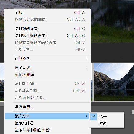 您现在可以选择将胶片放在左侧面板(建议用于人像)或底部面板(建议用于风景)中。要更改胶片方向,请执行以下步骤: