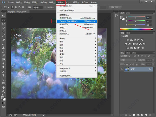 camera raw 18软件需要与ps软件配合使用,打开ps软件,在滤镜中可以看到camera raw滤镜,点击即可。