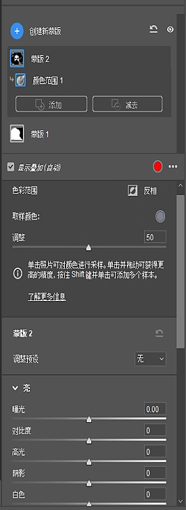 4、如需添加新蒙版,请单击创建新蒙版并选择所需的工具。这样,您就可以在同一张照片中添加不同的蒙版,并以有序的方式访问它们。