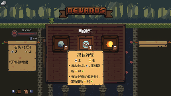 1、起初玩家只会有石头和匕首弹珠,到后面可以收集其他弹珠,中途也可以强化和删除弹珠。