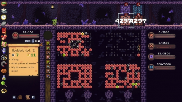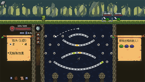 哥布林弹球中文版是一款roguelike类型的弹珠游戏,英文名Peglin。玩家通过投掷弹珠攻击敌人,每局开始时有三颗石头和一把小刀,可以使用不同能力的弹珠和遗物来增强战斗力。游戏关卡通过弹珠投掷随机选择路线,充满未知性和趣味性。