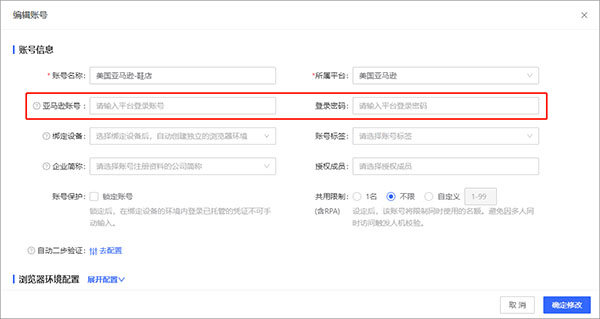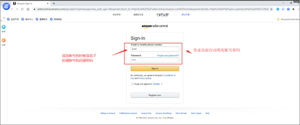 6、店铺注册成功后可返回账号管理编辑账号,将账号和密码填充,方便后续打开账号自动填充