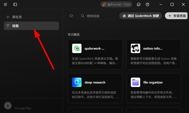 7、Skills无限扩展:通过技能广场一键安装或自定义开发,让AI能力随工作流进化。