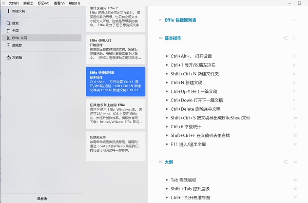 Effie写作软快捷键列表