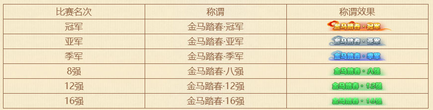 1、比赛期间,少侠可随时前往金马踏春使者处,传档角色信息至比赛服;