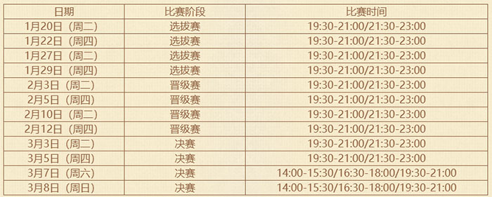 2)晋级赛:(2月第二周和2月第三周的周二、周四)