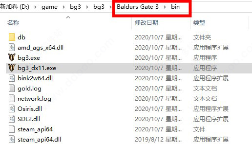 2、在Baldurs Gate 3/bin文件夹中,找到bg3_dx11.exe启动游戏;
