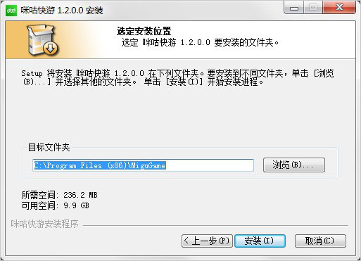2、首先双击"migugame-zy-gw002.exe"程序,按默认目录安装;