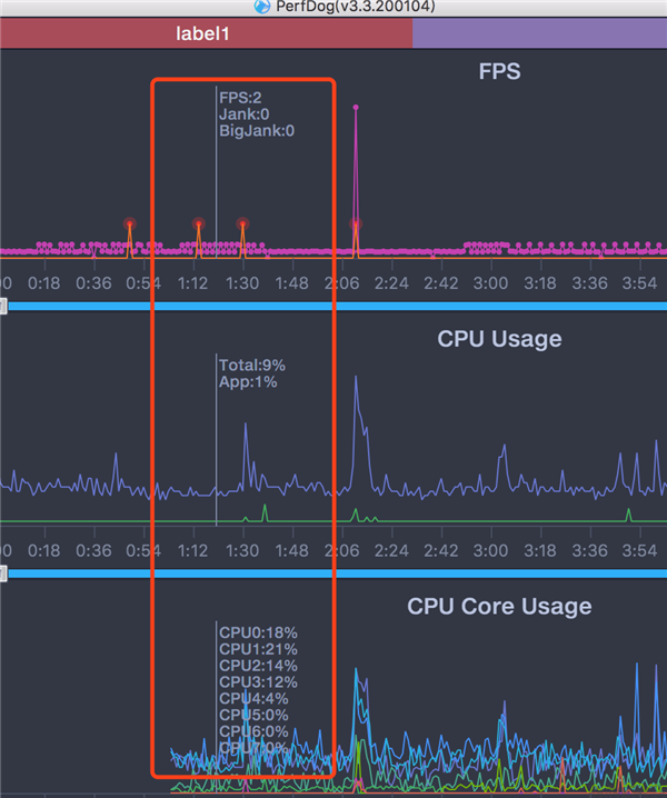 5、CPU Usage(Total整机/App进程,统计结果合Xcode一致)