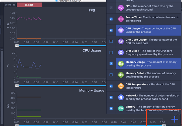 点击”+ ”按钮,选择需要收集性能参数,控制性能参数显示page