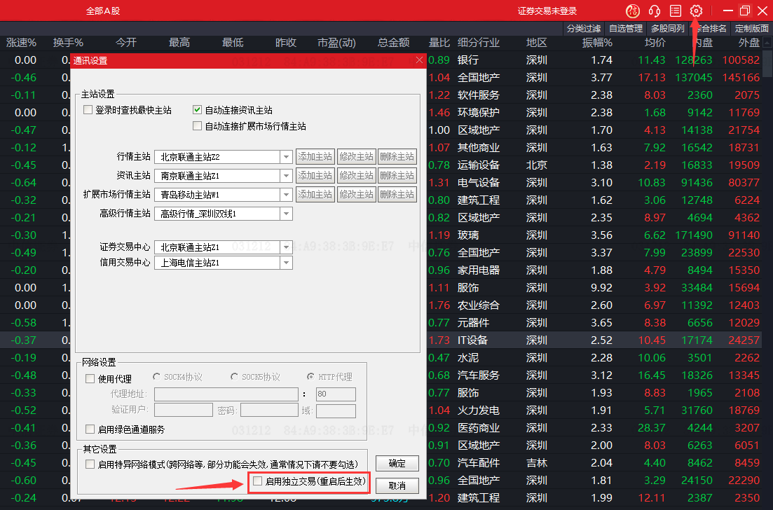 较新版本客户端支持独立交易功能。在登陆界面“设置”-“通迅设置”,或客户端右上角“设置”-“通讯设置”中,选择或取消选择“开启独立交易”,重启客户端后即可使用独立交易。独立交易只支持传统交易界面。