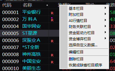 在综合排名中可以使用右键菜单选择查看不同的市场信息,同时可以按“3行3列”或“1行4列”的方式选择查看的方式。
