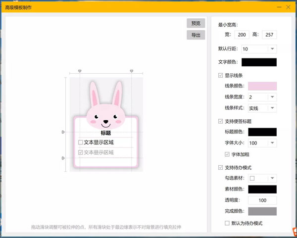 此外高级模式还可以制作可任意比例改变便签大小的模板,只需要拖动滑块设置可被拉伸的区域即可。