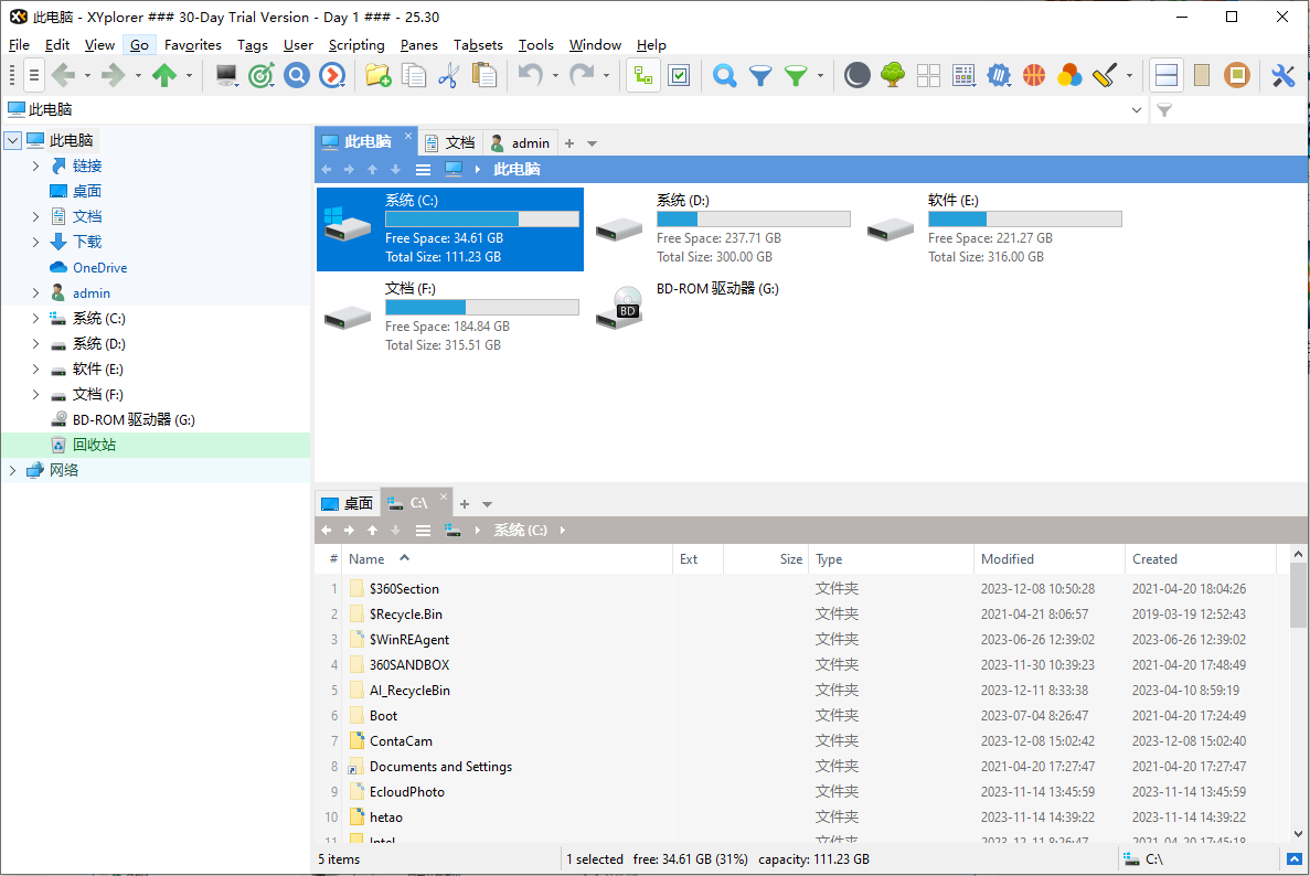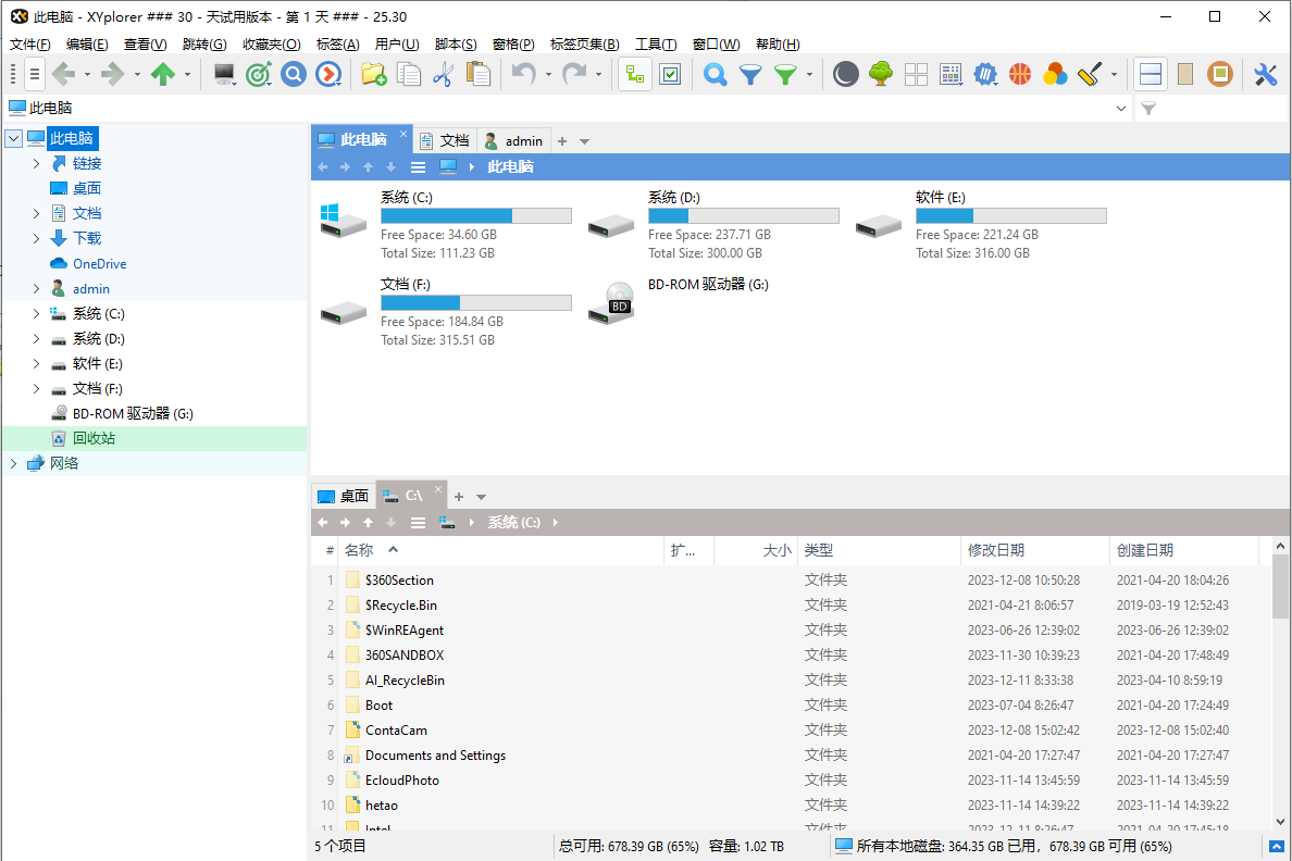4、如图,此时XYplorer的界面即可设置为简体中文界面。