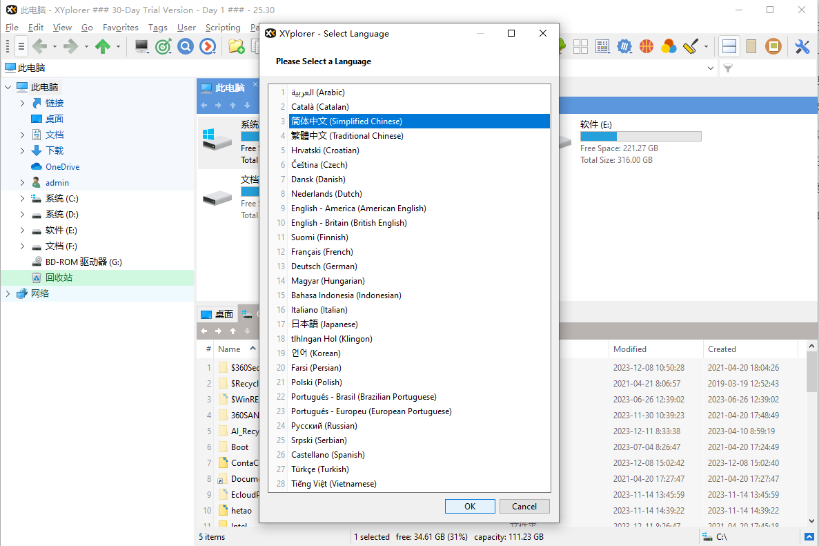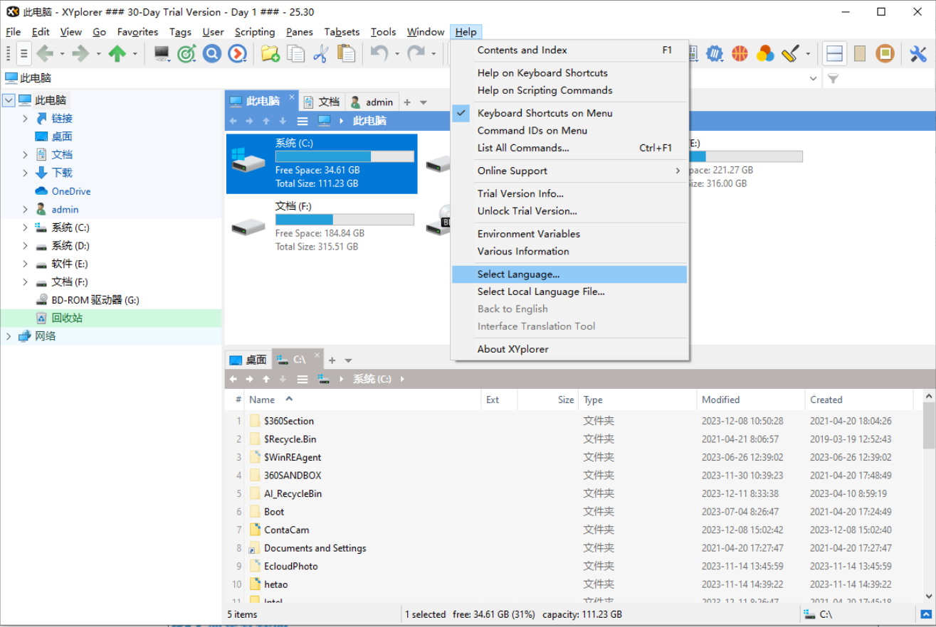 多语言支持: XYplorer默认使用英语,但支持许多其他界面语言。
