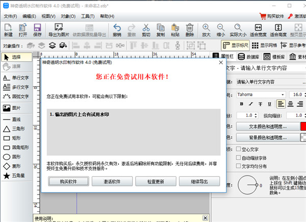 6、编辑完成后点击导出为图片按钮弹出软件注册提醒弹框,点击继续导出即可