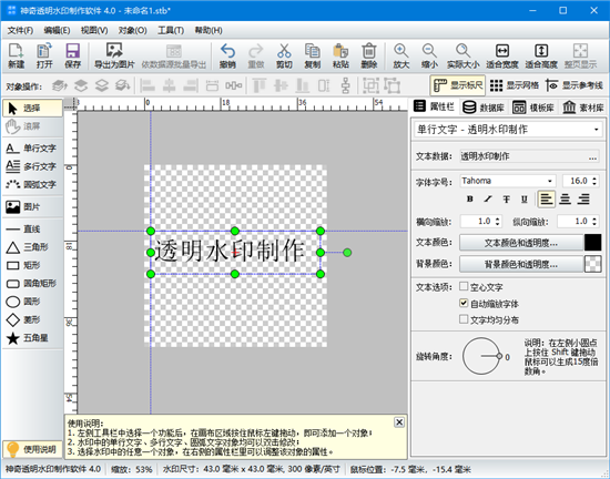 这个神奇透明水印制作软件真的挺强大的!它不仅支持logo设计,还能生成各种透明图片,功能很全面。首先,软件提供了多种水印效果,比如普通、模糊和斑驳效果,用户可以根据需要调整清晰度和细节。我觉得这种多样化的效果选择对于设计师来说特别实用。