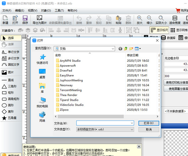 3、点击打开文件然后双击文件即可将文件添加到软件上进行水印编辑与修改