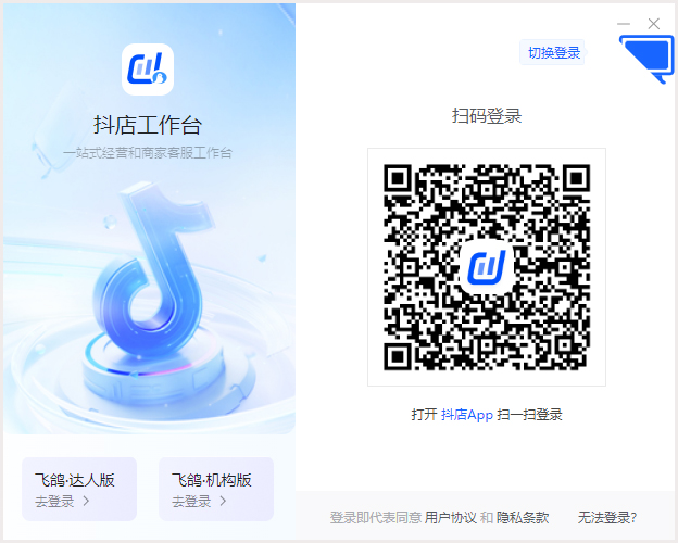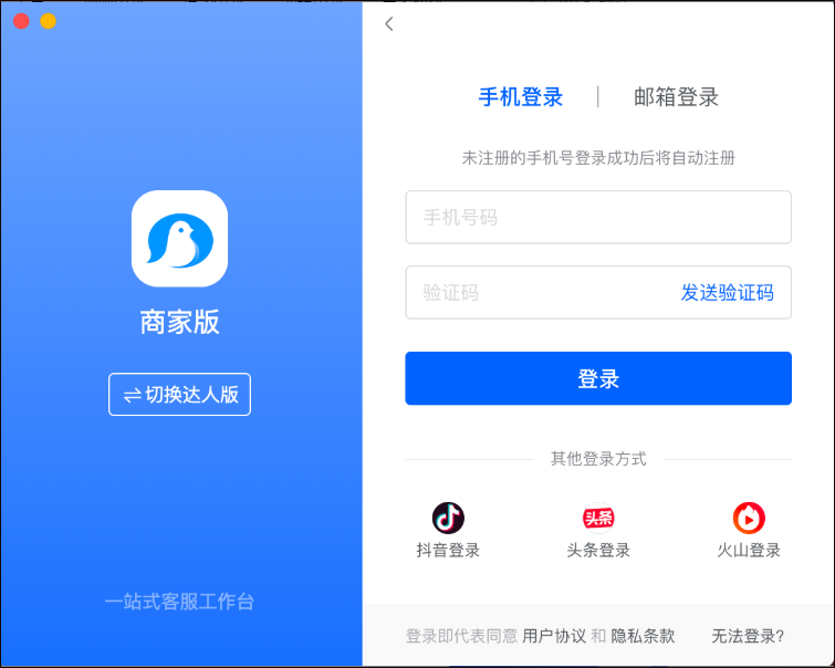 2、登录会出现选择登录身份的界面,飞鸽支持商家/达人客服使用,选择自己的身份即可。