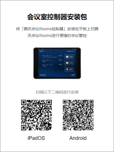 将「腾讯会议Rooms控制器」安装在平板上对腾讯会议Rooms进行便捷的会议管控