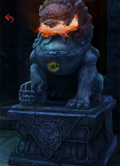 5、把黄珠子给周府门口右边的石狮子,狮子嘴里喷出火焰,使用未点燃的火折子,获得点燃的火折子。