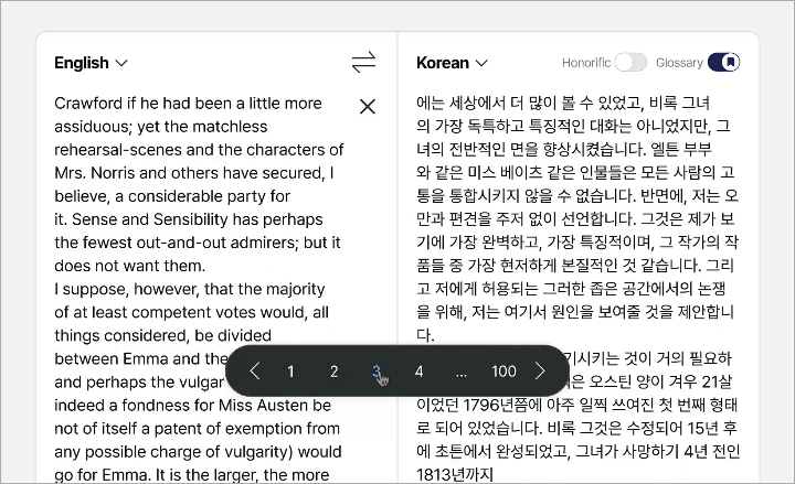 即使是长篇文章,也能根据上下文一次性快速完成翻译。