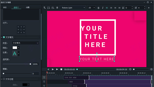 要编辑文字效果,可以在时间轴中双击打开“文本”编辑面板来调整文本的样式(字体,大小,颜色,对齐方式等)和动画效果。