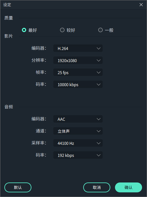 在设置窗口中有三个质量级别:最好,较好和一般。它们之间唯一的区别是码率。你还可以在此窗口中调整此参数或其他参数,例如分辨率和帧率。