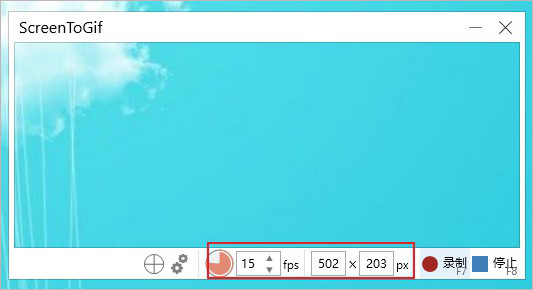 2、录制屏幕:点击录像机,弹出一个中空的窗口,可以通过鼠标来控制窗口的大小和位置,也可以通过右下角的输入框设置fps和尺寸;
