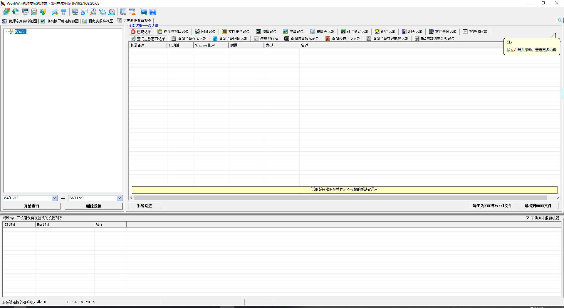 3、选择相应的机器后,可以查看程序窗口、网址记录、文件操作记录、流量记录、屏幕记录和文件备份记录等详细的内容,