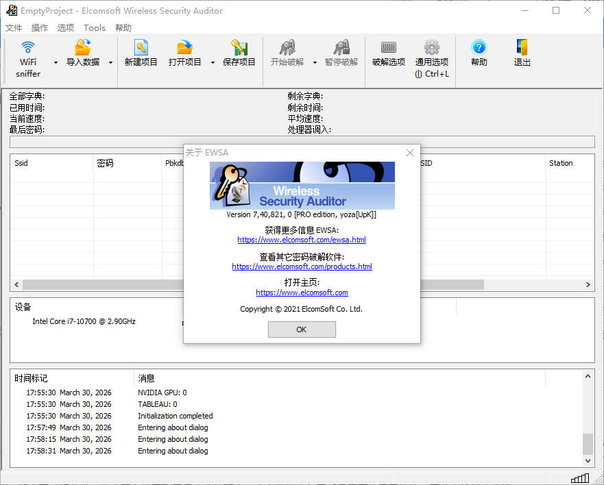 这篇文章主要介绍了一款名为EWSA的软件,它是由俄罗斯公司开发的一款小巧强大的无线网络wifi密码破解工具。EWSA利用GPU运算性能快速攻破无线网络密码,相比使用CPU可提高最多上百倍的运算速度。它的主要原理是通过密码字典来攻击wpa和wpa2 wifi密码。