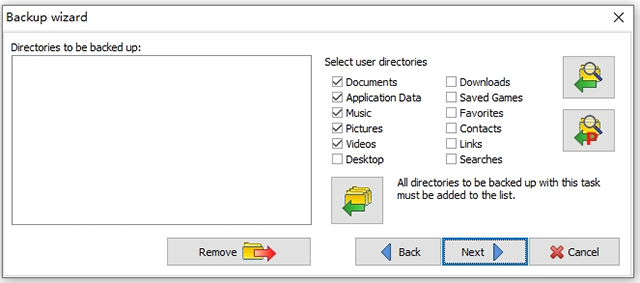 3、选择需要备份的目录,直接在右侧选择对应的数据添加到左侧,可以手动添加文件夹。