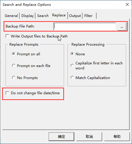 15、您可以(可选)将替换操作更改的文件写入备份目录,并在替换期间保留原始文件的时间/日期戳。