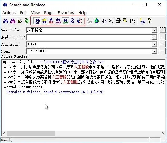 9、搜索和替换还可以在“找到的”文件上启动关联程序,例如,如果搜索命中发生在.htm或.html文件中,则启动Web浏览器。