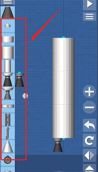 1、首先利用各种零件设计建造我们的火箭,如图所示。